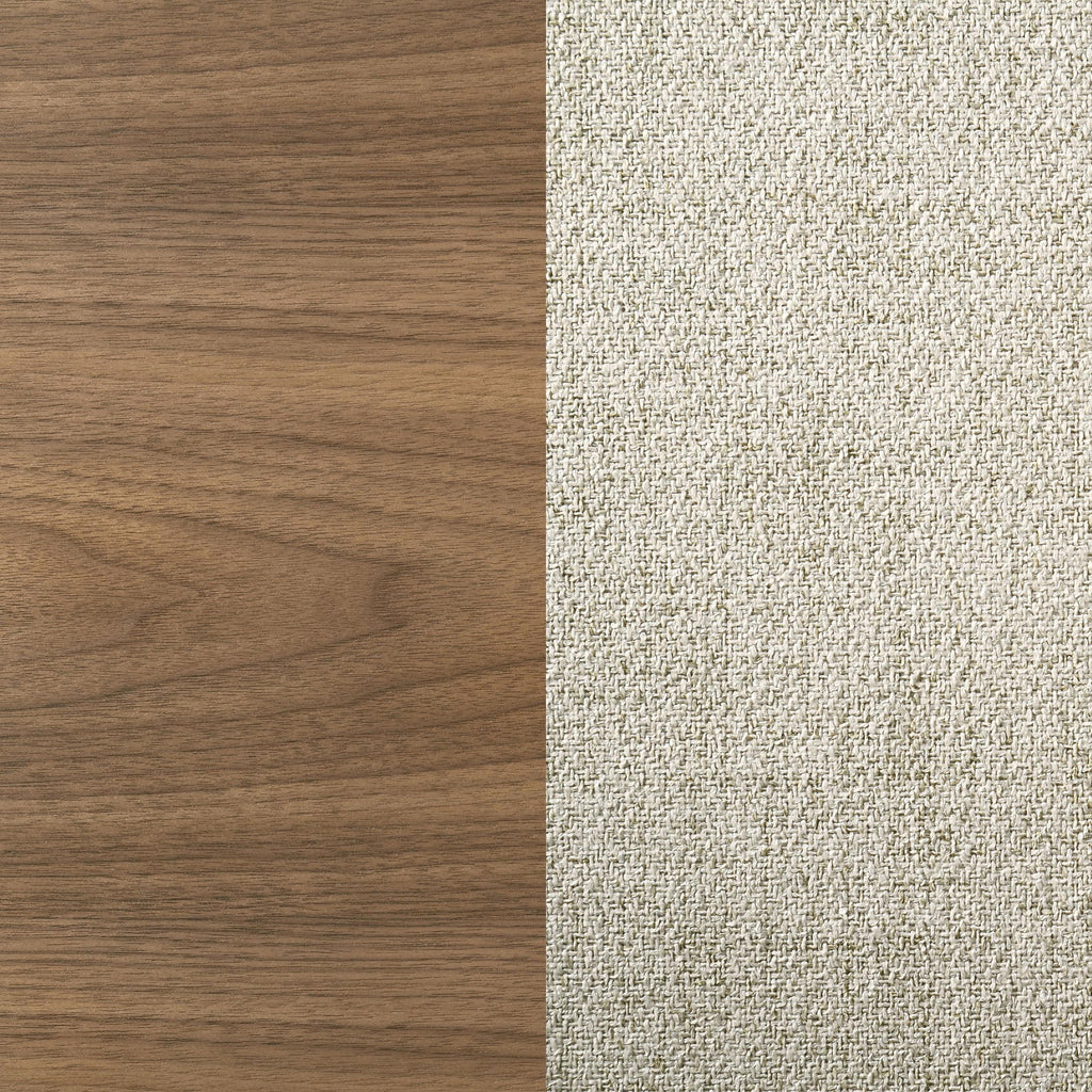 Accentuate the inviting style of your kitchen or dining room with a modern rectangular dining set. It offers fresh, contemporary flair with a walnut wood grain finish paired with beige upholstery on its chairs. The table features a trestle base and round post legs, offering casual ambiance for a welcoming home. Chairs are designed with wooden back and wedge details that add movement and character. Foam seat cushions are upholstered in beige fabric, offering neutral contrast and providing exceptional comfort and support for delicious meals. Key Features: • Casual style makes this modern five-piece dining room set the ideal choice for approachable ambiance • A walnut finish highlights the wood grain details of each chair and adds richness • Table with round post legs and a classic trestle base bring casual character and timeless style • Seats feature wedge details and foam cushions with beige fabric upholstery for excellent comfort • Crafted with walnut veneer paired with rubberwood and engineered wood for durability