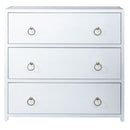 Liberty Furniture Midnight Accent Cabinet in Wire Brushed White 2030WH-AC3432. Turn your house into a home with the eclectic East End accent cabinet. Crafted of Acacia Solids and veneers, this piece features a wire brushed white finish accented with brass ring hardware. This cabinet offers three deep full extension drawers for storage and is versatile enough to work in any room, from your entry hall to your bedroom. Unique and timeless, allow the East End accent cabinet to bring inspirational design into your home.