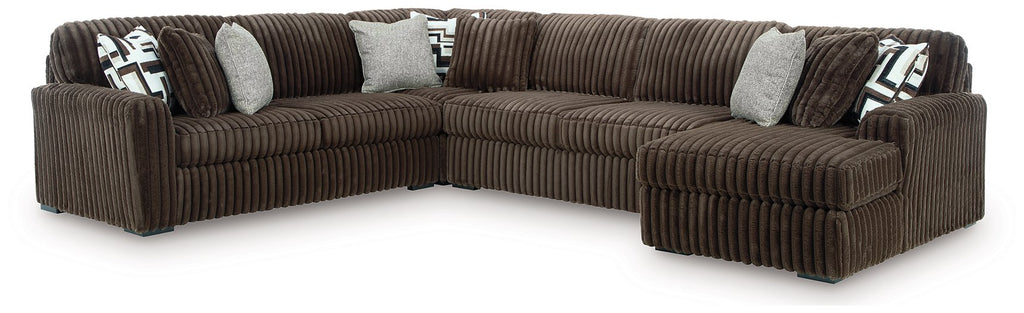 Wrapped in luxuriously soft jumbo corduroy, this sectional with chaise takes cozy and inviting to a higher level. The sumptuous piece is perfect for unwinding after a long day, with exceptionally textured cushions that deliver pure indulgence. Now all you have to do is kick back, sink in and relax.