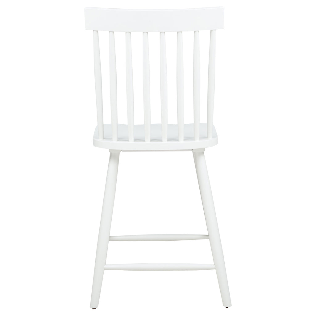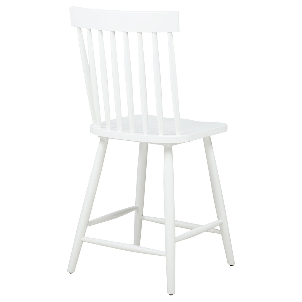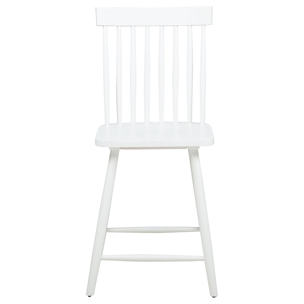 Classic and casual with a fresh farmhouse flair, this Windsor-style counter height chair features a high spindle back and gently contoured seat for timeless comfort. The clean silhouette is crafted from solid rubberwood with a rich wood veneer that enhances its natural grain. Angled legs with double stretchers offer reliable support and charm. Ideal for kitchen islands, pub tables, or counter-height dining spaces. Key Features: • Windsor-style counter height chair in light ash finish brings casual elegance to kitchen counters • High spindle back and curved seat on this counter chair support relaxed, upright dining comfort • Angled leg design adds stability while enhancing its signature farmhouse-style silhouette • Footrest stretchers provide extra comfort and structural integrity for daily use • Crafted from solid rubberwood and topped with a warm-toned wood veneer for natural appeal • Clean, timeless lines and elevated height work perfectly with counter-height tables or bars