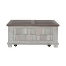 Liberty Furniture River Place Lift Top Storage Cocktail Table in Riverstone White & Tobacco, 42W x 42D x 19H, 158lbs.