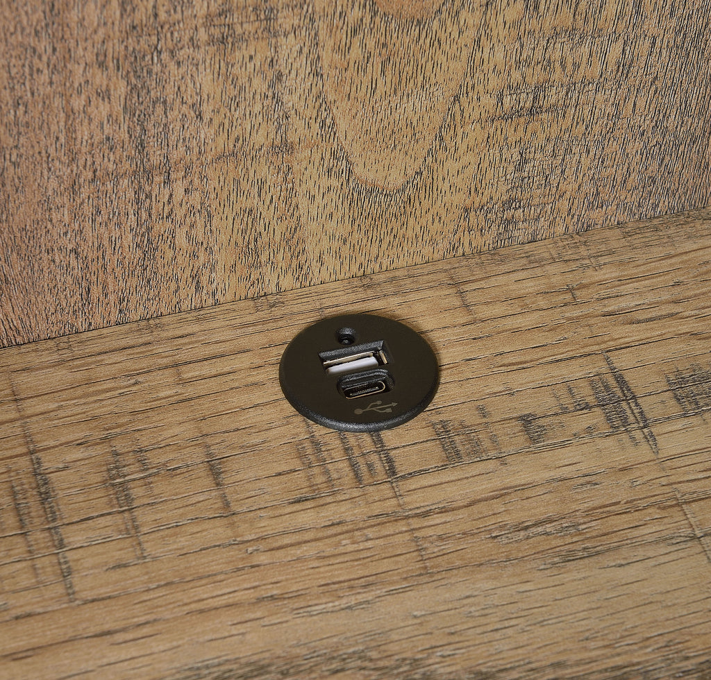 This 3-piece bedroom set includes a bookcase headboard and two coordinating nightstands designed for practical bedroom storage. Open cubbies on the headboard and hutches keep books and essentials within reach, while lockable top drawers add secure storage. Each nightstand features built-in USB-A and USB-C charging ports. Made from engineered wood and finished in a scratch-resistant laminate veneer, the set delivers durability and everyday convenience across a range of room styles. Key Features: • Three-piece bookcase headboard and nightstand set offers cohesive and functional bedroom storage • Scratch-resistant laminate veneer finish over engineered wood construction • Open cubbies on headboard and nightstands provide easy access to frequently used items • Top drawers on nightstands are lockable for secure storage of personal belongings • Each nightstand includes USB-A and USB-C charging ports for bedside connectivity • Versatile, space-saving design fits seamlessly into a variety of bedroom settings