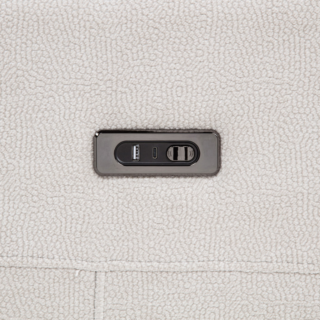 Unwind in perfect sync with this chenille power reclining loveseat, crafted for shared comfort and convenience. Dual recliners offer smooth, quiet motion at your touch, while a center console adds thoughtful storage with a lift-top compartment and two removable stainless steel cup holders. Wrapped in soft, textured chenille and reinforced with a durable metal frame, this piece blends everyday luxury with functional ease. Key Features: • Power loveseat with smooth dual recliners offers effortless, personalized comfort • Ivory chenille upholstery adds softness and a subtle textured visual appeal • Center console features lift-top storage for remotes, books, or other items • Includes two removable stainless steel cup holders for clean and easy use • Durable metal framing supports long-term strength and daily reliability • Polyester chenille fabric balances plush comfort with easy-care maintenance