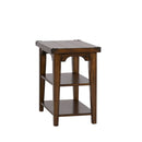 Liberty Aspen Skies Chair Side Table in Russet Brown 316-OT1021. Traditional table with a young attitude. Features rustic features of corner metal accents and metal strapping.