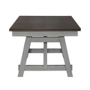 Liberty Furniture Newport Trestle Table in Smokey Grey. Feel at home with the Newport trestle table. Crafted with excellence using rubberwood solids and mindy veneers, this tabletop features a Carbon Grey finish. There are two, fourteen inch refectory leaves on both ends of the table allowing one to expand and contract the size of the table with ease. The square block legs feature wooden peg accents for a craftsman's feel. The center trestle ensures stability. Pair this tabletop with the Newport trestle table base to complete the table and wow family and friends. Feel comfortable and elegant at the same time with the Newport trestle table.