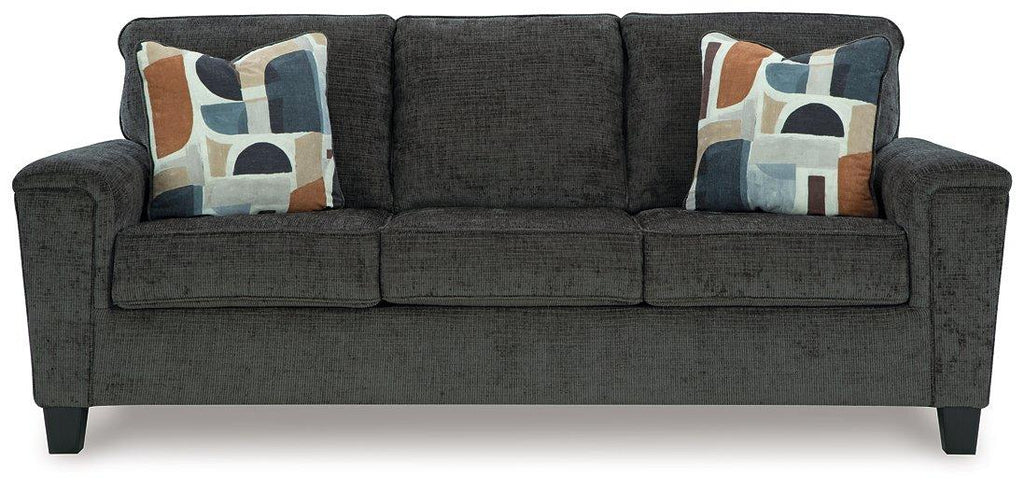 There’s something about this sofa that’s so easy to appreciate. Maybe it’s the plush upholstery and soothing tone, eager to support your quest for total relaxation. Perhaps it's the modern flair of its simple lines, tapered legs and abstract-patterned pillows. Whatever it is that appeals to you, this is a piece you're gonna love.